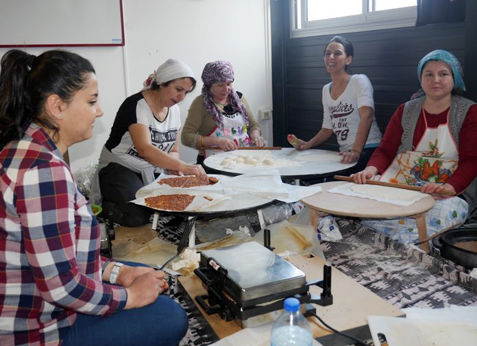 Dernek üyelerinin eşleri lahmacun hazırlarken, beyler de iştahla servisi yapılmasını bekledi.