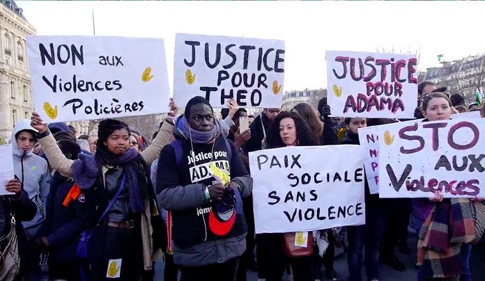 Fransa’da polisin 4 Şubat 2017 günü 22 yaşındaki bir gence yaptığı jopla tecavüz olayı ve polisin gençlere yönelik yaptığı şiddeti protesto etmek için başkent Paris ve banliyölerinde başlayan gösteriler son iki haftadır aralıksız sürüyor. Gösterdilerde öfkeli gençler polisleri taşlayıp çevredeki iş yerlerini kırıp dökerek zarar veriyor. Polis bu durum karşısında çoğu kez kalabalığı göz yaşartıcı gaz sıkarak dağıtıyor. Olaya karışanlları tesbit edip gözaltına alıp hakim karşısına çıkarıyor. Başkent Paris’te aynı anda farklı yerlerde polis şiddetine karşı düzenlenen gösteriler için, polis OHAL çercevesinde çok sıkı güvenlik önlemleri alarak olası çıkacak olayları önleme yoluna gidiyor. Paris’in 18.nci bölgesinde düzenlenen gösteride, gösteriye katalanlara yakın güvenlik güccünün gösteri alanında olması dikkat çekti.