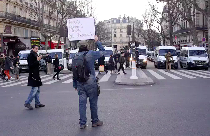 Gösteri alanına girenlerin üzerini patlayıcı veya iş yerlerine zarar verecek demir çubuk benzeri zarar verici aygıtların gösteri alanına sokulmaması için polis gösteri yakınından geçen kişilerin çanta ve üzerlerini arayıp öyle girmelerine izin veriyor. Ayrıca gösterinin yapılacağı meydana çıkan tüm cadde ve sokakların başını jandarma otobüsleri ve polis minübüsleriyle kapatan polis, göstericilerin izinsiz olarak yürüyüş yapmasını engelliyor. Gösteriye katılan gençler sık sık adalet istiyoruz, Jople tecavüze uğrayan Theo’ya şiddet uygulanan polislerin cezalandırılmasını istiyoruz, adalet istiyoruz, polis şiddetine son, polis cinayetleri son bulsun, gibi sloganlarla polis şiddeteni kınıyorlar.