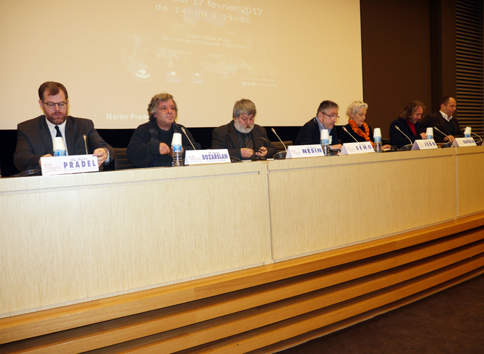 İlk oturum ‘Türkiye’de Durum” moderatörülüğünü Le Monde gazetesi yazarı ve Türkiye uzmanı Marc Semo’nun yaptığı oturumda, Prof. Hamit Bozarslan, Le Monde Türkiye Muhabiri Marie Jego, Yazar Ahmet Nesin, Gazeteci Fehim Taştekin, Paris barosundan Martin Pradel ve Avrupa ırkçılığa karşı Hareket başkanı Benjamin Abtan, konuşmacı olarak katıldılar. İkinci oturumda ‘Batılı müttefikler Türkiye’de ne yapabilir?’ Moderatörlüğünü Paris Kürd Enstitüsü Başkanı Kendal Nezan’ın yaptı. Otorumun konuşmacıları ise HDP Mardin Milletvekili Hukukçu Prof. Mithat Sancar, ABD Kolumbiya Üneversitesinden Hukuk profesörü. Davit Phillips ile Yeşiller Milletvekili Sergio Coronado konuştu.