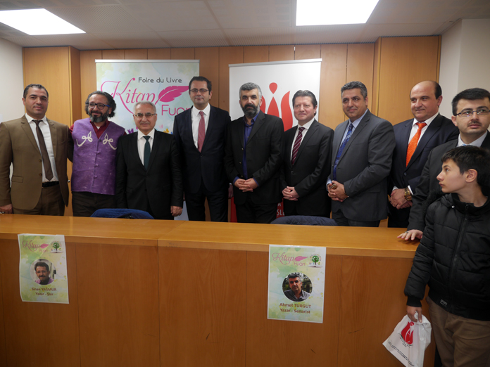 Fransa DİTİB’in Paris’teki Merkezi’nde düzenlenen Kitap Fuarı’nın açılış kurdelesini Türkiye’nin Paris Başkonsolosu Görkem Barış Tantekin ile Paris Din Hizmetleri Müşavirliği’ni vekaleten yürüten, Strazburg Din Hizmetleri Ataşesi Dr. M. Fevzi Hamurcu ve Paris Başkonsolusloğu’ndan Konsolos Müslüm Aygün, fuar’da eserleri bulunan yazarlardan Ahmet Turgut, Sinan Yağmur ve Fransa DİTİB Yönetim kurulundan Selahattin Palandöken,Seçkin İlhan,Mustafa Çelebi ile birlikte kestiler.