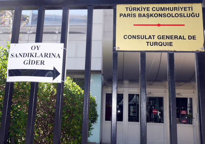 Türkiye’de 16 Nisan Pazar günü yapılacak anayasa değişikliği halk oylaması için yurt dışındaki temsilciliklerde sandıklar kuruldu. Yurt dışındaki 2 milyon 927 bin Türk seçmen, 14 gün süresince 27 Mart – 9 Nisan tarihleri arasında oy kullanacak. Yurt dışında 57 ülkedeki 120 temsilcilikte kurulan sandıklarda oy verme işlemleri 29 Mart 2017 tarihinden itibaren oy kullanılabilecek. Hazırlıkların tamamlandığı Paris Başkonsolosluğu’nda, Başkonsolos Görkem Barış Tantekin, seçmenlerin oy kullanacağı çadır içindeki oy kullanma kabinleri ile oy kullanmak için vatandaşların bekleme alanını Paris’teki Türk basın mensuplarına tanıttı.