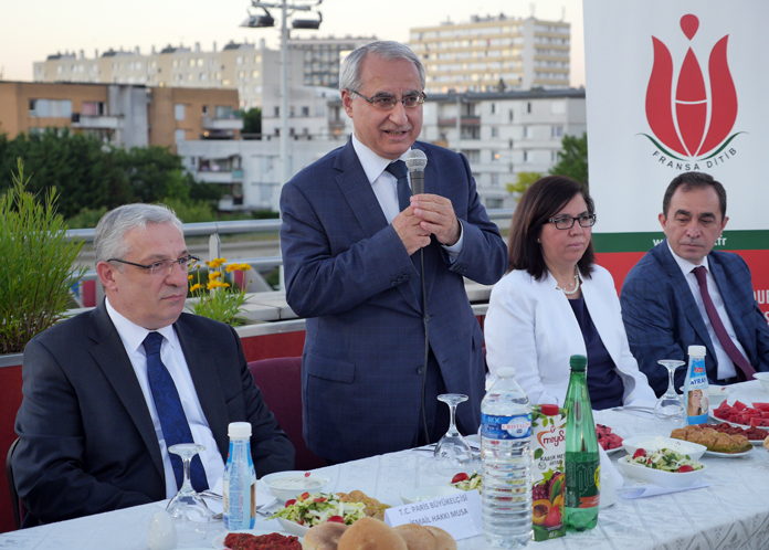 Öncesi Kur’an-ı Kerim Tilavetini Paris Din Hizmetleri Ataşe Vekili İlhan Sarıkülçe okudu ve Paris Din Hizmetleri Müşavir vekili Strazburg Din Hizmetleri Ataşesi Dr. M. Fevzi Hamurcu, davetlileri selamladı. ve iftar yemeğine katılanlara katılımlarından dolayı teşekkür etti. Proğram çerçevesinde, Kur’an-ı Kerim Tilavetini Paris Din Hizmetleri Ataşe Vekili İlhan Sarıkülçe okudu. İftar vaktinin geldiğini DİTİB Merkezi Camii Din Görevlisi Hasan Gökmen okuduğu Akşam ezanıyla duyurdu. Davetliler oruçların açtılar ve daha sonra yemek duası okundu. Davetliler arasında bulunan Büyükelçi İsmail Hakkı Musa, proğramda belirtildiği üzere, iftara iştirak eden davetlileri kısa bir konuşma yaptı.
