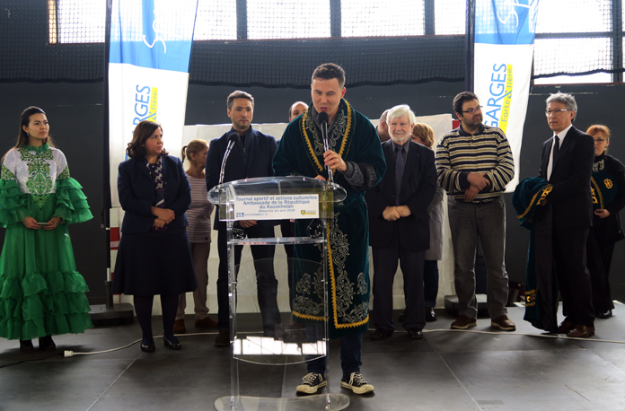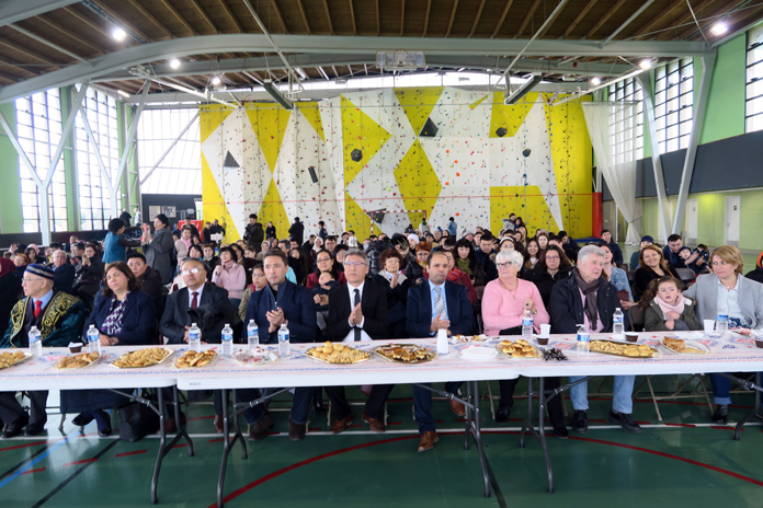 Kapalı salonda devam eden “Nevruz Bayramı Kutlama Etkinliği çerçevesinde, salonu dolduran izleyicilere, günün önemini belirten ilk konuşmayı Garges-Les-Gonesse Belediye Başkanı Maurice Lefevre yaptı. Başkan Lefevre, “iki bayramı bir arada kutluyoruz bugün hem Nevruz’u hem de Paskalya bayramını “dedi ve Nevruz bayramının Orta Asya’da Türkler tarafından, İlkbahar’ın gelişinin kutlandığını söyledi. Organizasyon tarafından Belediye Başkanı Lefevre, Kazak Türklerinin geleneksel olarak önemli konuklarına hediye ettikleri Kafatan sahnede giydirilerek hediye edildi.