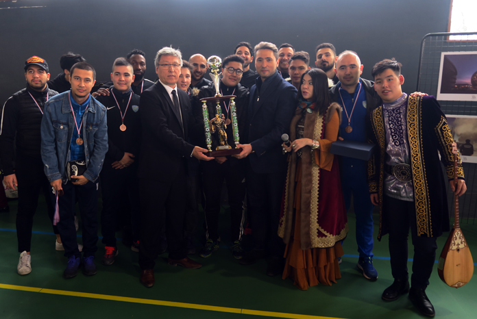 Nevruz Bayramı Etkinliği çerçevesinde yapılan Organizasyon gereği, etkinliğin yapıldığı alanın spor sahasında Futbol turnuvası düzenlendi. 30 dakikalık karşılaşmalar halinde yapılan müsabakaların sonunda Paris Kazak Spor, turnuvanın kazananı ilan edildi. Futbol turnuvasının son bulması üzerine davetliler etkinliklerin devam edeceği kapalı salona alındılar. Salonun girişine kurulan Kazak otağ çadırı önünde kimi davetliler hatıra fotoğrafı çektirdiler ve davetlilere Kazakistan’dan özel getirilen kavunuz içinde bal ile otağı simgeleyen içinde çikolata bulunan kutu hediye edild.