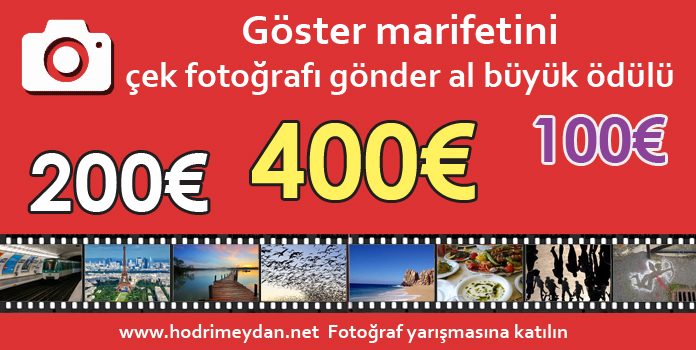 Sizlerinde katılımıyla daha da büyeyecek olan fotoğraf çekip gönderme yarışmasına göndereceğiniz fotoğraflar arasında en çok beğeni alan birinciye 400 euro ikinciye 200 euro üçüncü gelen yarışmacıya 100 euro ödül verileceği duyurusunda bulunuyoruz. Ayrıca 20 yarışmacıya katılım sertifikası ile bir şiir kitabı hediye edeceğiz. Bizim amacımız, çektiğiniz fotoğrafların arşivinizde kalması yerine fotoğrafı çekmek için sarfettiğiniz emeğin bir karşılığı olsun. Fotoğrafı çeken kişinin bütçesine azda olsa katkıda bulunmak istedik. Belki ihtiyaç sahibi olan birilerine azda olsa katkımız olsun istedik. Biz meydanı, fotoğraf çekmeyi çok seven güzel anılar yakalayan fotoğraf sevdalılarına bırakıyoruz. Şimdi alın elinize fotoğraf makinanızı veya cep telefonunuzla çektiğiniz fotoğrafı yarışmaya katılmak için gönderin. Biz de sizden gelen fotoğrafları www.hodrimeydan.net