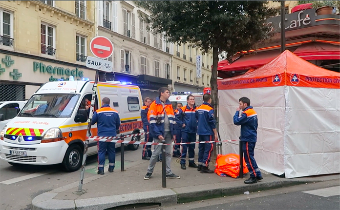 Çok yakınında bulunan Paris Anadolu Kültür Merkezi Başkanı Dr. Fıtrat Demir Onger, sabah erken geldim cumartesi olduğu için hastalarıma erken randevu vermiştim. İlk hastamı muayene ederken çok gürültülü bir ses duydum.sanki top atışı yapılmıştı, hemen pencereye koştuk patlamadan dolayı pencere camları açıkmıştı, duman ve alev görüntüsü kaplamıştı tam karşımızda meydana gelen patlamanıın olduğu binada “dedi.