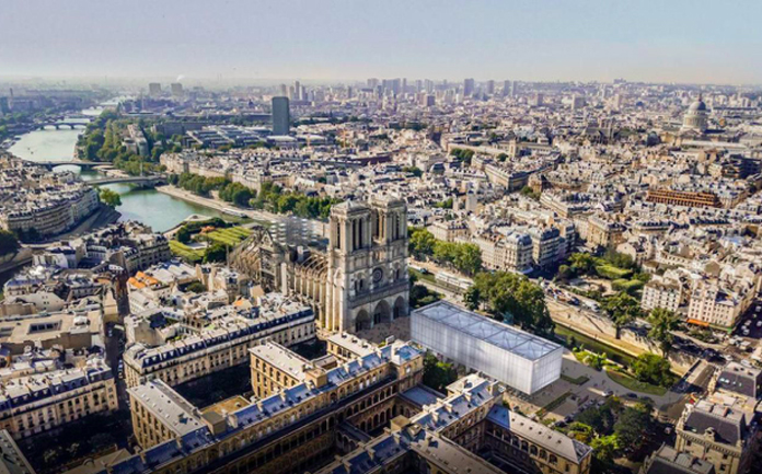 Notre-Dame katedralı’nın restarasyonu tamamlanasıya kadar ö geçici olarak ayin yapılabilecek bir katedral projesi. İngiliz mimari ve tasarım firması Gensler bir proje hazırladı. Geçen Nisan ayında, Notre-Dame rektörü Monsignor Chauvet, restarasyon çalışmasının yapılacak ayinleri aksatmaması için katedralin ön tarafında geçici bir katedral inşaa edilmesi için çağrıda bulunmuştu. Bir İngiliz firması olan Gensler, rektör Monsignor Chauvet’in çağrısına ilk cevap Londra’dan geldi. Paris’teki Gensler firmasının tasarım başkanı Philippe Paré, “Notre-Dame trajedisinden çok etkilendiklerini.” Belirtip, bizim için yeniden yapılanma döneminde ayin yapılamaması düşünülemezdi. Bu yüzden iyi bir irade ruhu ile bu geçici katedral üzerinde çalışmak için inisiyatif aldık.”