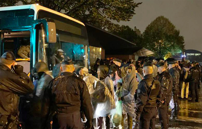 Hava şartlarının soğumasıyla birlikte zor koşullarda çadırlarda yaşayan göçmenleri kapalı spor salonu veya benzeri yerlere yerleştirmek üzere otobüslerle taşıdılar. Paris Emniyet Müdürü kampların boşaltılmasıyla ilgili olarak yaptığı açıklamada, kaldırılan kampların yerine yeniden kamp kurulmasına izin verilmeyeceği söyledi.