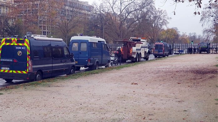 Başkentin ünlü caddesi Champs Elysees’de Çiftçilerin eylem yapmasını engellemek üzere zafer takını çevreleyen 13 yol bağlantısını kapatarak Çiftçilerin girişini engellediler. Tüm engellemelere rağmen traktörle giremeyen çiftçiler bir kaç arabaya doldurdukları samanı Champs Elysses caddesi yakınına dökerek eylem yaptılar.