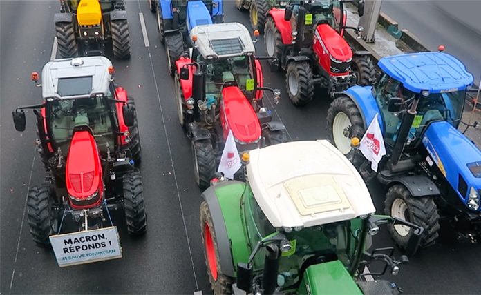 Başkent Paris’te toplanan çiftçiler, “Macron, bize cevap ver. Çiftçileri kurtar” yazılı pankart asılı traktörleriyle yola çıktı. Kuzey ve güney bölgelerden Paris’e gelen binden fazla traktörlü çiftçinin eylemi nedeniyle, bazı otoyollarda trafik durma noktasına geldi.Traktör kornalarına basarak eylem yapan çiftçiler, araçlarına sendikaların bayraklarını astı.