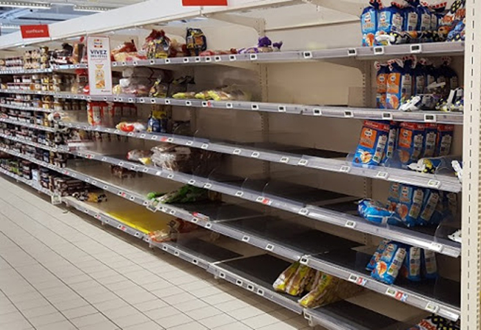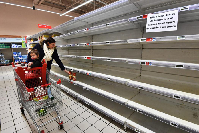 Koronavirus tehlikesi Fransızları korkuttu, olası evden çıkma yasağı getirilmesi korkusuyla bazı büyük mağazaların rafları boşaldı. Halk gıda stoku yapmaya başladı. koronavirüs hakkındaki belirsizlik ve her geçen gün yeni bir koronavirüs vakası ortaya çıkması üzerine mağazalarda temel gıda ürünlerinin bulunduğu rafların hızla boşaldığı dikkati çekti.