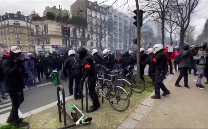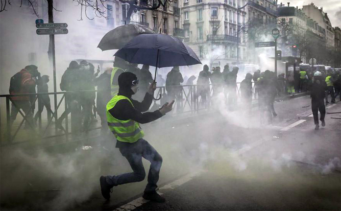 Sarı yelekliler, hükümetin yeni tip koronavirüs (Kovid-19) salgını nedeniyle 100’den fazla kişinin bir araya geldiği etkinlik ve gösterileri yasaklamasına rağmen eylem yapan göstericiler, Paris’te Montparnasse Bulvarı’nda toplanan Sarı Yelekliler, İtalya Meydanı’na yürüdü. Göstericiler ile polis arasında arbede çıktı. Polis göstericilere karşı gözyaşartıcı gaz kullandı. Göstericiler de Polislere sokak da polise atabilecekleri ne varsa attılar.