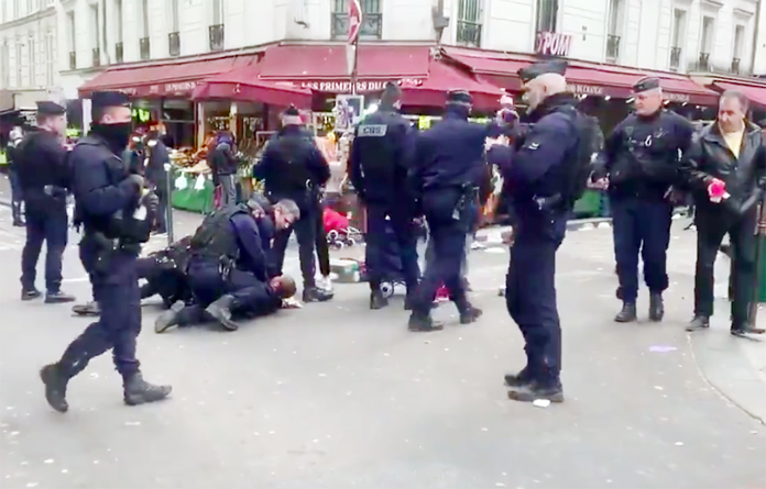 Kesin olarak doğrulanmayan bir habere göre, sokağa çıkış sertifikasını göstermediği ve kesilen para cezasını ödemeyi reddettiği gerekçesiyle bir kadının tutuklandığı iddia edildi. Polis’in Paris’in 18’nci bölgesindeki bir Pazar yerinde yerde yatan bir kadına kelepçe takmaya çalıştığını gösterin bir video kaynak olarak gösteriliyor.