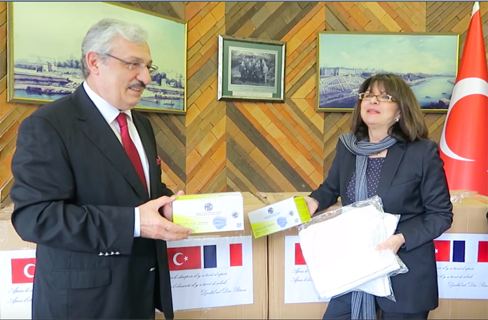 TÜRKİYE’NİN BAĞIŞI MASKELERİ FRANSIZ SENATÖR GOULET BÜYÜKELÇİ’DEN TESLİM ALDI