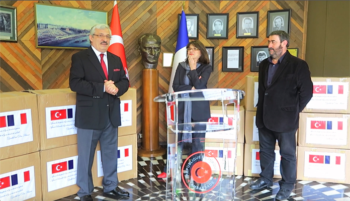 Türkiye, yeni tip korona virüs (Covid-19) salgınıyla mücadele eden ülkelere tıbbı yardımlarına devam ediyor. Fransız Senatör Nathalie Goulet’in Türkiye’den tıbbi yardım talebinde bulunması üzerine söz konusu talebe yanıt veren Türkiye, Fransa’ya korona virüsle mücadele kapsamında tıbbı malzeme gönderdi. Fransız Senatör Goulet, Fransa’ya gönderilen tıbbi malzemeleri Türkiye’nin Paris Büyükelçiliği’nde Büyükelçi İsmail Hakkı Musa’dan teslim aldı.