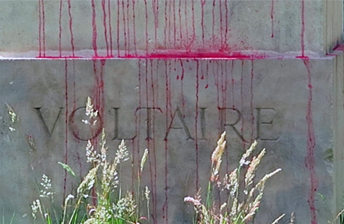 Fransız sömürge döneminiyle ilgili Paris’te Fransız aydınlanma döneminin filazoflarından olan Voltaire’in heykeline kırmızı boya döküldü. Kölelik veya sömürgecilikle bağlantılı figürleri çağrıştıran anıtları yok etmeyi amaçlayan küresel düşünce yanlıları tarafından Voltaire’in heykeli kırmızı boyayla boyanarak aşağılanmaya çalışıldığı görüldü. Fransız Filazof Voltaire’in servetinin bir kısmını sömürge ticaretine borçlu olduğu iddia edilen Fransız Aydınlanmasının ana düşünürlerinden ve yazarlarından Voltaire’e yapılan bu boyama hareketini bir çok kişi tarafından normal karşılanmadı.