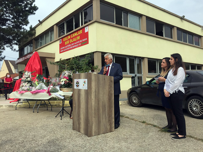 Paris Alevi Kültür Merkezi’ndeki Cem Evi’nin girişine konulan Hacı Bektaş Veli heykeli açılışında; Avrupa Alevi Birlikleri İnanç Kurulu Sekreteri Metin Doğan Dede.Fransa Alevi Birlikleri Federasyonun Kuzey Batı Bölge Eşit Başkanı Serpil Alıcı. CHP Paris Başkanı Uğur Güven. Arnouville AKM Başkanı.Varennes AKM Eşit Başkanları. Melun AKM Başkanı.