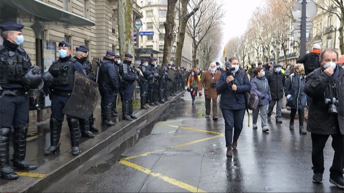 Fransa’da sol sendikalar, korona virüs (Covid-19) salgınına yönelik alınan tedbirler çerçevesinde geçici olarak kapalı tutulan iş yerlerinin işçi çıkarmalarını protesto etmek için yürüyüş gerçekleştirdi. Ulusal Meclis binası yakınında toplanan göstericiler, Fransa İşverenler ve Sanayiciler Derneği (MEDEF) Merkezi’ne kadar yürüdü.