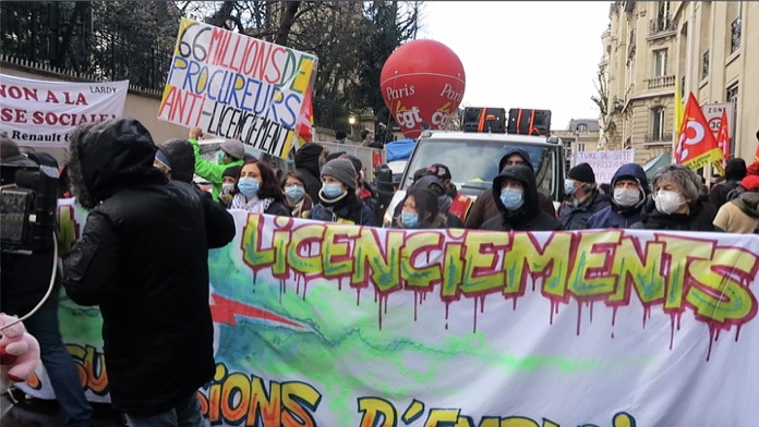 Paris’te sol sendikalar şirketlerin işçi çıkarmasını protesto etti. Fransa’da sol sendikalar, Covid-19 salgınına yönelik alınan tedbirler çerçevesinde geçici olarak kapalı tutulan iş yerlerinin işçi çıkarmalarını protesto etti.