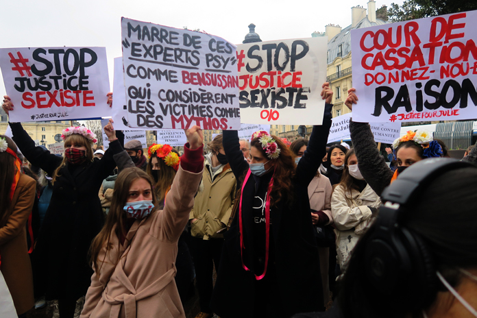 Fransa’da yüzlerce kişi, 13 yaşındayken Julie’ye 2 yıl boyunca tecavüz eden 20 itfaiye erinin yargılanması için protesto düzenledi. Fransa’nın başkenti Paris’te bulunan tarihi adalet sarayı yakınlarında toplanan yüzlerce kişi, 2008 yılında 13 yaşındayken Julie’ye 2 yıl boyunca tecavüz eden 20 itfaiye erinin yargılanması için protesto düzenledi. Julie’nin 2008’den 2010 yılına kadar hastaneye sevk edildiği sırada 20 itfaiyeci tarafından birçok kez tecavüze uğradığı ortaya çıkmıştı. 2 Kasım 2020 tarihinde olay hakkında açılan davada mahkeme, yalnızca 3 itfaiye eri hakkındaki tecavüz iddiasını onaylamış, bazı itfaiye erlerinin itiraflarına rağmen 17 itfaiye erinin görevlerine devam etmesine karar vermişti.Mahkemenin kararı ise ülkede vatandaşların tepkisini çekmişti. Fransa’da kadın hakları savunucuları ve birçok vatandaş ise 17 itfaiye erinin mesleklerine geri dönmesini “Adaletsizlik ” olarak nitelendirerek, Julie’ye yapılanları kınadı. Göstericiler, çarşamba günü yargılanacak olan 3 itfaiye eri dışında diğer 17 itfaiyecinin de yargılanıp ceza alması gerektiğini yönünde çağrıda bulundu.2008 yılında Julie’nin okulda rahatsızlanmasının ardından okul idaresi, Paris itfaiyesine haber vermiş, İtfaiyede görevli erler Julie’ye müdahale etmişti. Julie’nin sağlık durumuyla ilgilenen itfaiye erlerinden bir kişi ise Julie’nin iletişim bilgilerini kendi özel defterine kaydetmiş ve daha sonra sosyal medya üzerinden Julie ile iletişime geçmişti. Julie, 2 yıl boyunca yaşadığı rahatsızlık nedeni ile itfaiyeciler tarafından hastaneye kaldırılmış, ilerleyen zamanlarda Julie yaşadığı sağlık sorunları nedeniyle okula ara vermişti.
