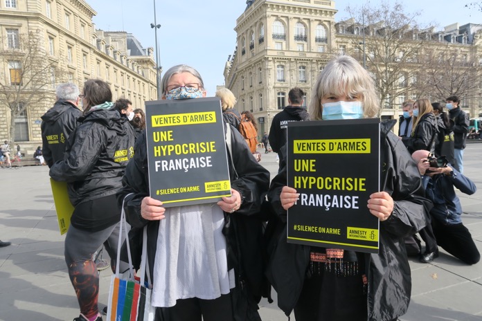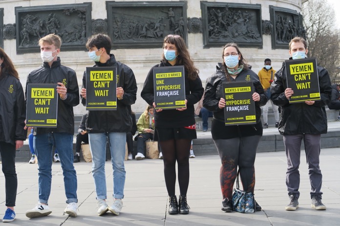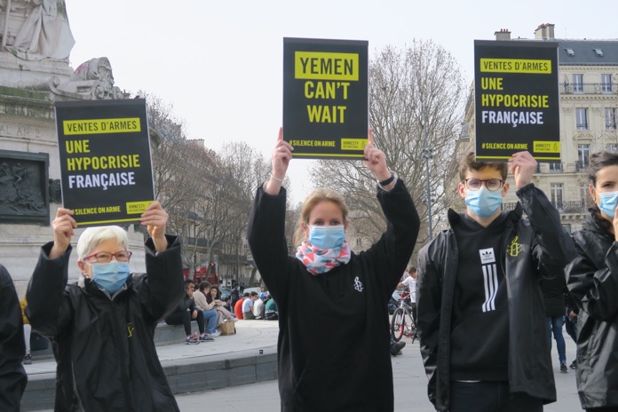 Uluslararası Af Örgütü, Fransa’nın başkenti Paris’in Republique Meydanı’nda düzenlediği gösteride, Suudi Arabistan’ın Yemen’de sivilleri katlettiği bu nedenle Fransa’nın Suudi Arabistan’a silah satışını protesto etti ve silah satışını durdurması çağrısında bulundu.