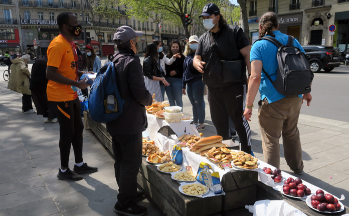 Paris’te örnek gençler, ihtiyaç sahiplerine kendi imkanlarıyla elde ettikleri yiyecekleri sokakta dağıttıyorlar. Kaan Arslen adlı Türk genci, annesine hazırlattığı börek, kek ve benzeri yiyecekler dışında satın aldığı meyve sebze gibi benzeri yiyecekleri başkent Paris’in republique meydanı’nda ihtiyaç sahiplerine dağıttı.