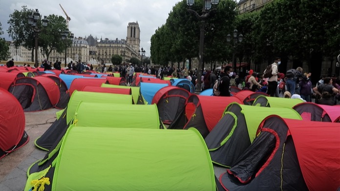 Fransa’da yüzlerce düzensiz göçmen, içinde bulundukları kötü yaşam koşullarına dikkat çekmek için başkent Paris’in ortasına çadır kurdu. Ne hükümet ne de Paris Belediyesi bir türlü bir çözüm bulamadığı düzensiz göçmenler, Başkent Paris’in ortasına sık sık izinsiz cadır kamp kurarak, hükümeti ve Paris belediyesini protesto ediyorlar.