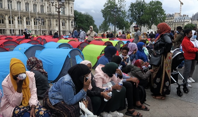 Fransa’da çoğunluğunu Afrikalılar ve Afganların oluşturduğu, aralarında kadın ve çocukların da bulunduğu 300’den fazla düzensiz göçmen, içinde bulundukları kötü koşulları hükümete ve yetkililer duyurmak için başkent Paris’teki belediye binası önünde çadır kurdu. Çadır içinde çocuğuyla oturan göçmen bir kadın, biliyoruz halkı evlerine çekilmesini bekliyor güvenlik güçleri bizi burdan uzaklaştıracaklar. Ama varlığımızı da kabullenecekler “dedi.