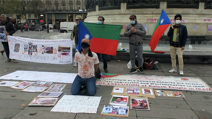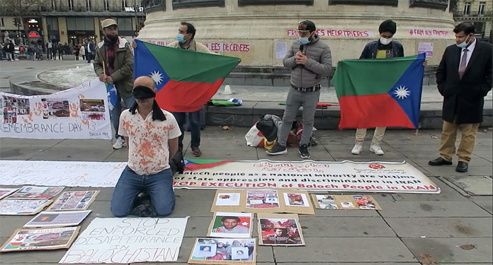 Fransa’nın başkenti Paris’te düzenlenen protestoda, İran ve Pakistan arasında yer alan Belucistan bölgesinde yaşayanların maruz kaldığı olumsuzluklara dikkat çekilirken, Beluç milliyetçisi bir kişinin gözü kapalı yaptığı eylem ilgi gördü. Fransa’nın başkenti Paris’te bulunan Republique (Cumhuriyet ) Meydanı, haftasonları Fransa’da yaşayan etkin grupların hak arama ve özgürlüğe kavuşma eylemlerine tanık oluyor. Meydanda farklı ülkelerin bünyesindeki etnik gruplar kendi bayraklarını açarak bölgelerinde yaşanan olumsuzlukları ve katliamları protesto ediyor. Son olarak, İran ve Pakistan arasında yer alan Belucistan bölgesinde yaşayanların maruz kaldığı olumsuzluklara dikkat çekmek için gösteri düzenlendi. İran ve Pakistan’ın Belucistan üzerindeki anlaşmazlığı nedeniyle bölge halkının yaşadığı olumsuzlukları dünyaya duyurmak isteyen bir gösterici ilginç bir yönteme başvurdu. Üzerinde kanı andıran kırmızı lekelerin yer aldığı bir tişört giyen gösterici, gözlerini siyah bir kumaş parçasıyla kapattı. Bir grup Beluç milliyetçisinin de bayrak açarak destek verdiği gösteri çevredekiler tarafından ilgiyle izlenirken, göstericiler Fransa Cumhurbaşkanı Macron’un iki ülkeyle olan ilişkilerini gözden geçirmesini talep ettiler.