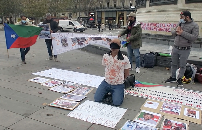 PARİS’TE BELÜÇ MİLLİYETÇİSİ KİŞİDEN İLGİNÇ PROTESTO