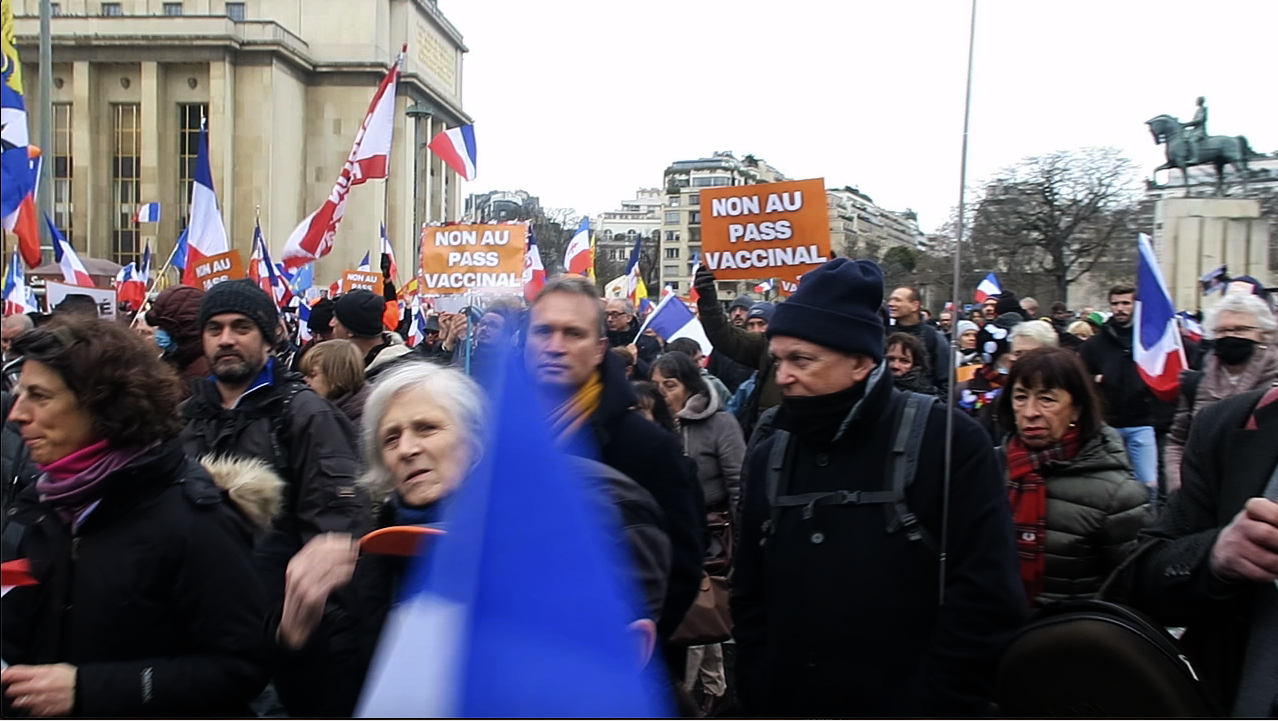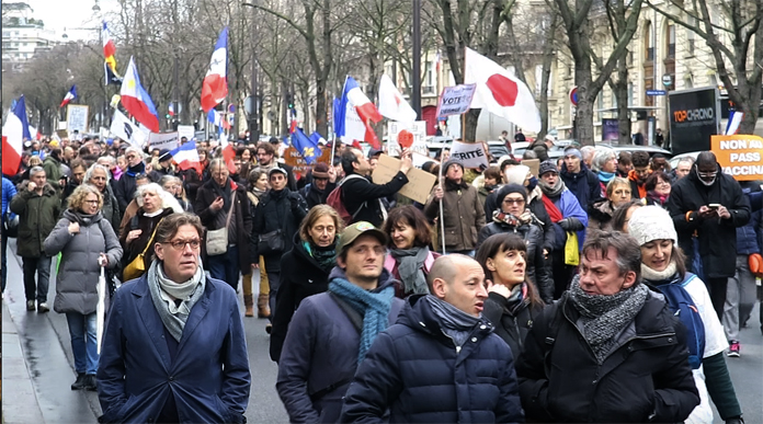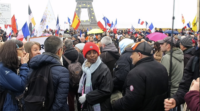 Aşırı sağcı Les Patriotes (Vatanseverler) liderliğinde başkent Paris’te dünyaca ünlü Eyfel Kulesi’nin karşısındaki Trocadero Meydanı’nda toplanan binlerce kişi, Covid-19 aşı kartının halka açık yerlere girebilmek için zorunlu hale getirilmesini ve hükümeti protesto etti.