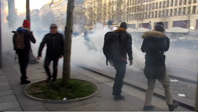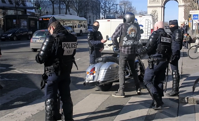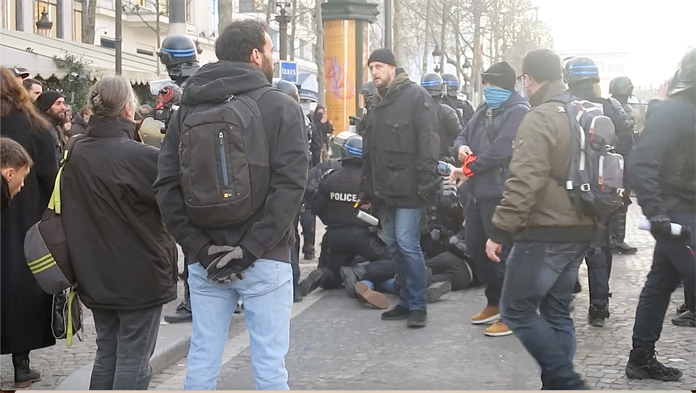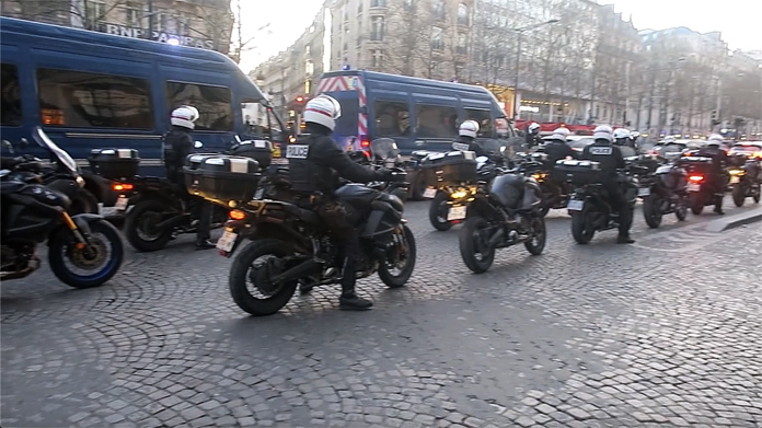 Yasağa rağmen kente giren ve Özgürlük Konvoyu’na ait olduğu belirlenen araçlara ve elinde flama ve pankrat taşıyan eylemcilere 135 euro ceza yazan polis ekipleri, küçük gruplar halinde hareket eden göstericileri çevreden uzaklaştırmaya çalıştı. Zaman zaman küçük gruplar halinde bir araya gelen göstericiler Champs-Elysees çevresinde gece yarısına kadar gösteri yaptı. Polisle karşı karşıya gelen eylemcilere karşı gözyaşartıcı gaz kullandı.