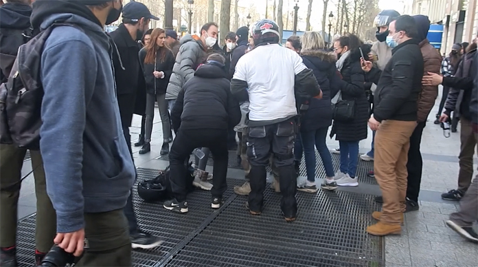 Özgürlük Konvoyu’nun Champs-Elysee Caddesi’ne gireceği yönde bilgi edinen Paris Emniyet Müdürlüğü, başta Zafer takı çevresi olmak üzere caddeye açılan bütün sokak başlarını Concorde Meydanı girişlerinde geniş önlem aldı. Polisin zırhlı araçları konuşlandırdığı bölgeye giren az sayıdaki eylemciler barikat ve kontrolleri aşıp Champs-Elysees Caddesi’ne girmeyi başardılar. Champs-Elysees Caddesi ve çevresinde yaşanan olaylara polis sık sık gözyaşartıcı gaz kullananarak müdahale etti.