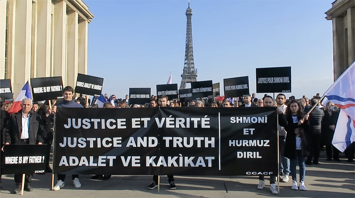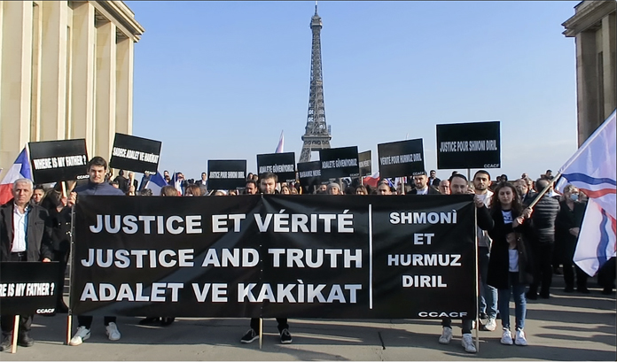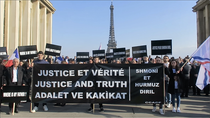30 Yılı aşkın bir süredir, Hürmüz ve Şimoni çiftinin kayıp olduğu bölgeden Fransa’ya gelip Paris’e yerleşen Keldani camiası bu durumdan son derece rahatsız olduğu görülüyor. Trocadero Meydanı’nda düzenlenen gösteride, Başta çocukları olmak üzere, Diril çiftinin kaçırılma olayı sonrası yaşananlar anlatıldı.