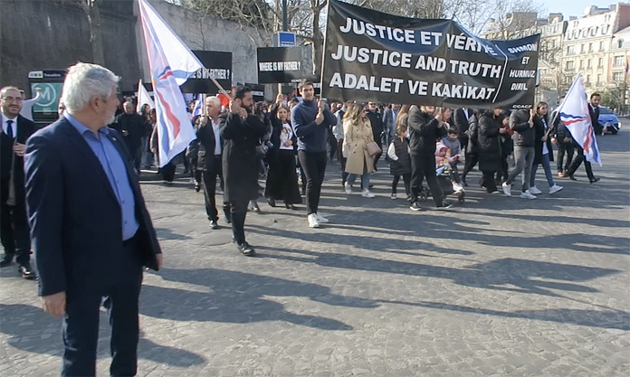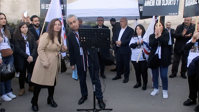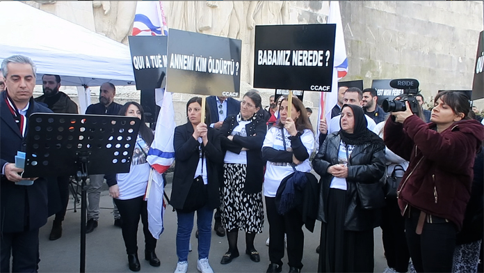 Paris’te birkaç ay evvel kurulan Fransa Asur-Keldani Dernekleri Koordinasyon Konseyi, ailenin isteği üzerine Başkent Paris’teki İnsan Hakları Meydanı Trocadero’da düzenledikleri gösteride ” Adalet istiyoruz Gerçeklerin ortaya konulmasını talep ediyoruz. Babamız Nerde ? Annemizin Katili veya katillerinin bulunmasını istiyoruz. Adalete güveniyoruz ” yazılı pankrat açtılar.