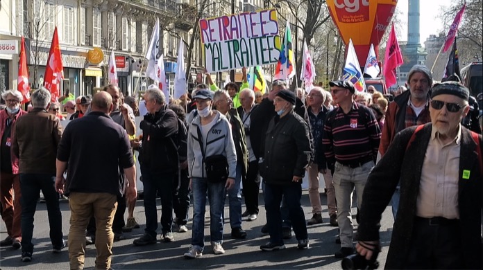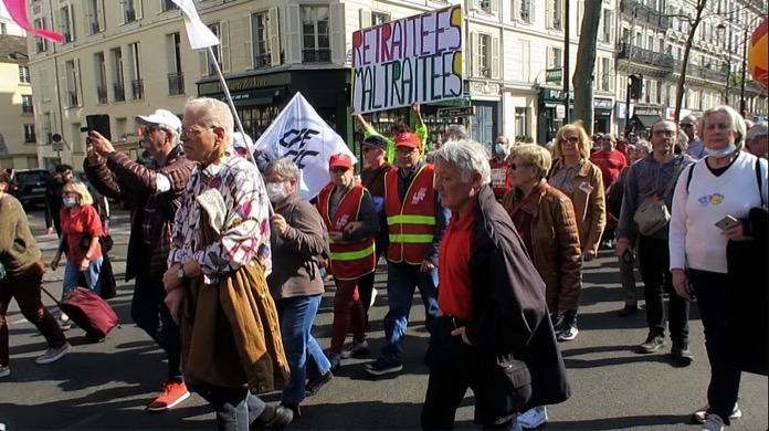 Fransa’nın başkenti Paris’te emekliler ülkenin ekonomik durumunun kötüleştiğini belirterek, alım güçlerinin ve emekli maaşlarının artırılması için eylem yaptı. Fransa’nın başkenti Paris’te emekliler sokağa indi. Ülkenin ekonomik durumunun kötüleştiğini belirten emekliler, alım güçlerinin ve emekli maaşlarının arttırılması için bir protesto düzenledi. Genel İş Sendikası’nın (CGT) desteğiyle düzenlenen eylemde emekliler, Covid-19 salgını ile birlikte emeklilerin alım gücünün düştüğünü bildirerek, ülkedeki sosyal şartların iyileştirilmesini talep etti. Emekliler düzenlenen eylemde ellerinde tencere ve tavalarla yürüyerek, yaşam şartlarının kötüleştiğine vurgu yaparak Fransa Cumhurbaşkanı Emmanuel Macron hükümetinin, Covid-19 salgınından ders çıkartmadığını duyurdu. Toplumun büyük çoğunluğunun Cumhurbaşkanı Macron’un emeklilik reformunu reddettiğini belirten emekliler, ertelenen emeklilik reformunun yeniden gündeme getirilmesi talebinde bulundu.