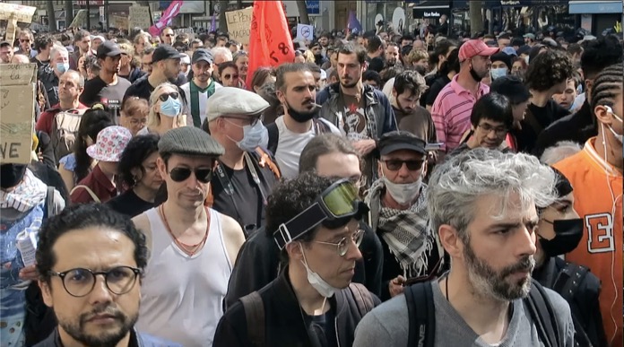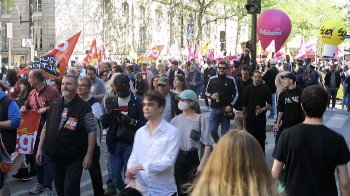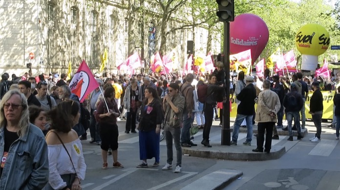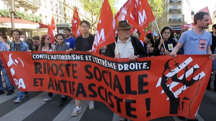 Birçok sendikanın çağrısıyla Paris’teki Nation Meydanı’nda toplanan eylemciler, Republique Meydanı’na kadar yürüdü. 24 Nisan’da düzenlenecek cumhurbaşkanı seçiminin ikinci turunda yarışacak Le Pen’e oy verilmemesi çağrısında bulunulan gösteride, “Ne Macron, ne Le Pen” ve aşırı sağ karşıtı sloganlar atıldı, pankartlar taşında.