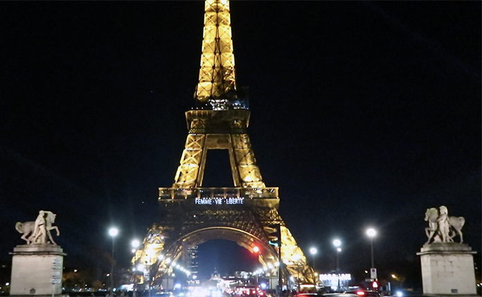 İran’da Mahsa Amini protestolarına katıldıkları gerekçesiyle idama mahkum edilenlerin sayısı her geçen gün artarken, Paris Belediyesi’nden İranlı göstericilere destek, İran hükümetine tepki geldi. Fransa’nın başkenti Paris’te yer alan dünyaca ünlü Eyfel Kulesi’ne Paris Belediyesi tarafından “İran’da idamları durdurun” sloganları yansıtıldı.