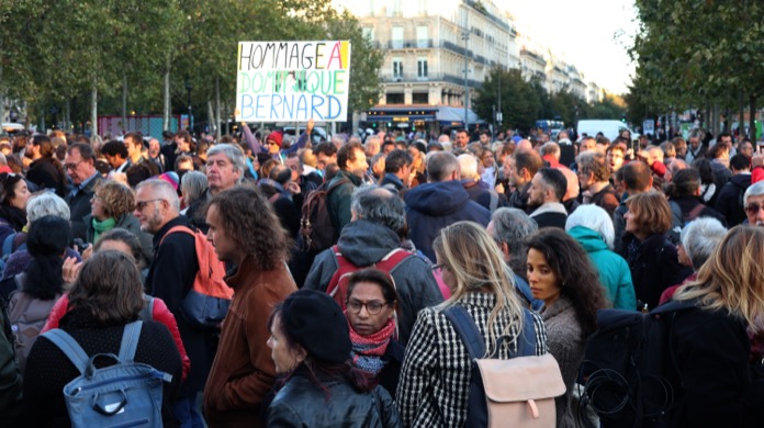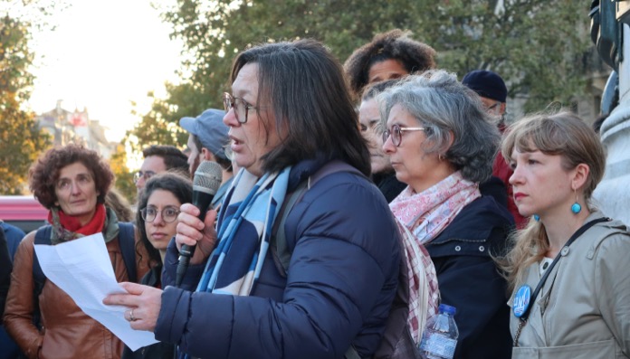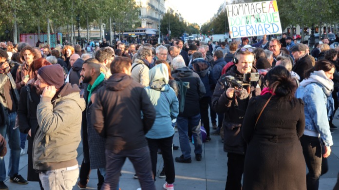 13 Ekim Cuma günü Arras’ta öldürülen öğretmen Dominique Bernard anısına düzenlenen bir dakikalık saygı duruşu sonrası kısa bir konuşma yapan bir öğretmen arkadaşı ”