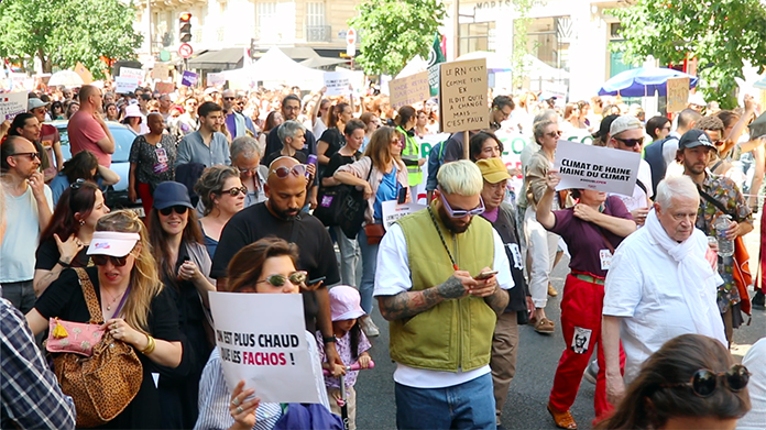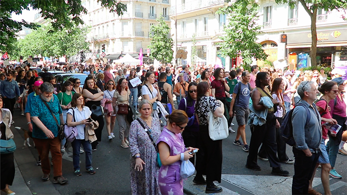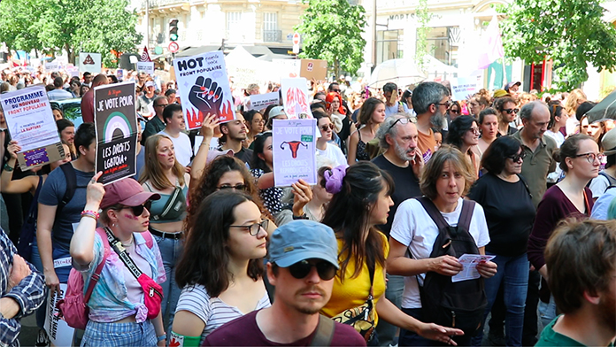 Fransa’da kadınlar aşırı sağa karşı yürüdü. Fransa’nın başkenti Paris’te kadın dernekleri ile kadın derneklerine destek veren 200. Yakın sivil toplum kuruluşları, yeşiller, sendikalar sol partiler, aşırı sağa karşı yürüyen kadınlar, faşizme karşı olma hakkımız var sloganıyla yürüdüler.Fransa’nın birçok kentinde kadınlar aşırı sağ karşıtı gösteri düzenledi. Başkent Paris’teki Republique Meydanı’nda bir araya gelen kadınlar, aşırı sağa karşı Bastille Meydanı’na yürüdü. Kadınlar, “Gün bugündür faşizme geçit vermeyelim” sloganı atarken, ellerinde “Faşizme karşı direnmek hakkımızdır” yazılı dövizler taşıdılar.Paris’teki yürüyüşte dağıtılan bildiride, “Meclis’in sorumsuzca feshedilmesinin ardından aşırı sağın iktidara gelme ihtimali artık çok gerçek. Biliyoruz ki onların öncelikli saplantısı, nüfusun büyük bir kesiminin hak ve özgürlüklerini kırmak olacaktır: Kadınlar, göçmenler ve özgürlük yanlıları aşırı sağın haksızlıklarına, ırkçılığına maruz kalacaklarını belirtiyor” denildi. Kadın dernekleri, kazanılmış sosyal hakları, özgürlükleri savunmak ve herkesin onuru için halka 30 Haziran ve 7 Temmuz’da düzenlenecek olan cumhurbaşkanlığı seçimlerinde oylarını kullanma çağrısında bulundu.Macron meclisi feshetmişti. Fransa’da Avrupa Parlamentosu seçimlerinde aşırı sağcı Ulusal Birlik tarafından elde edilen ezici üstünlük, Fransa Cumhurbaşkanı Emmanuel Macron’un Ulusal Meclis’i feshetme ve erken seçime gitme kararı almasına neden olmuştu. Avrupa Parlamentosu seçimlerinde Ulusal Birlik partisi oyların yüzde 31,5’ini almış, Macron’un partisi Rönesans ise oyların yüzde 15,2’sini alarak ikinci sırada yer almıştı.