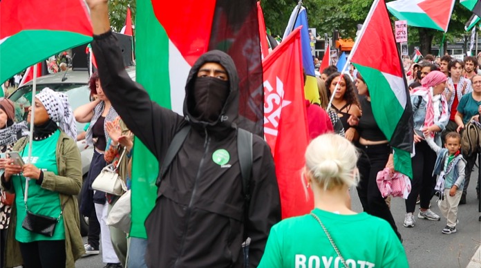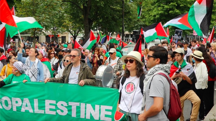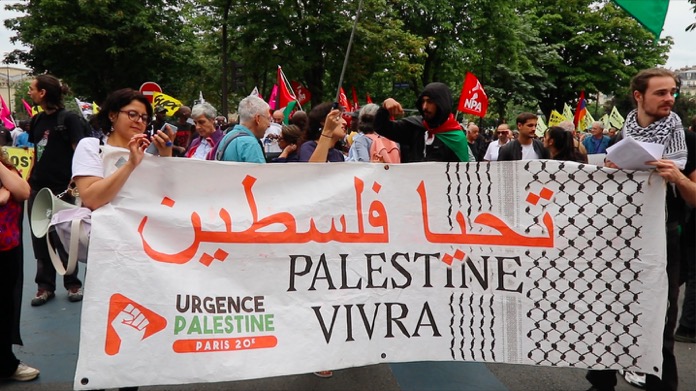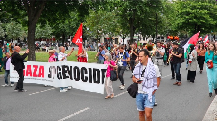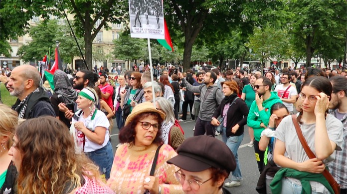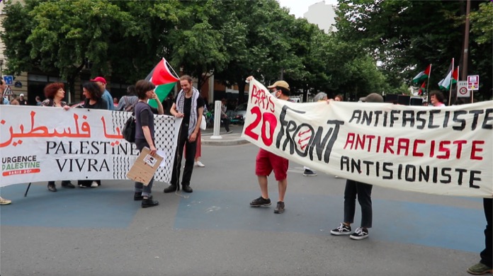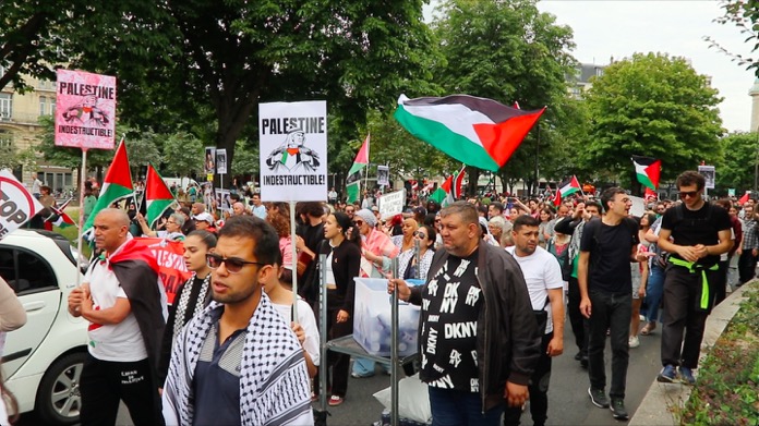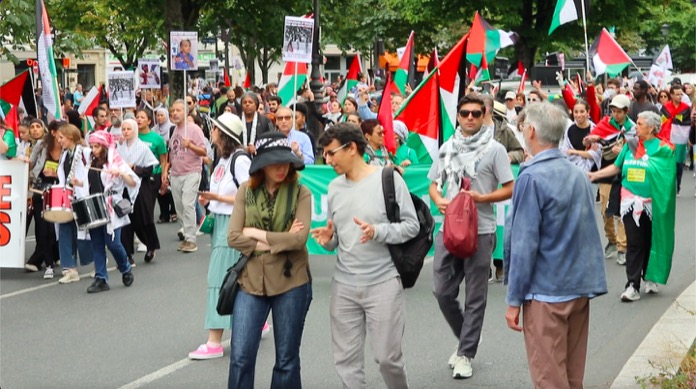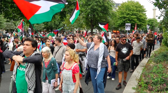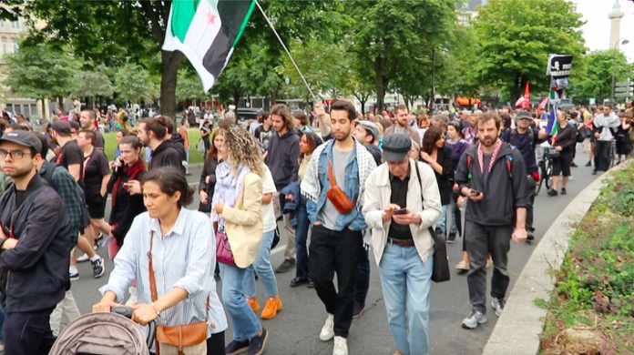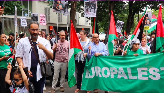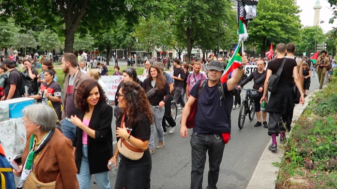 Düzenlenen bu dayanışma yürüyüşüne, Filistin ile Acil Dayanışma, ülkedeki oturma ve calışma izni olmuyanlar Koordinasyonu , Göçmen öğrenciler kollektifi, aşırı sağa karşı kurulmuş çeşitli dernek kuruluşlarınn destek verip katıldığı “Faşizme ve Sömürgeciliğe karşı 14 Temmuz Enternasyonal geçit töreni, başkent Paris’in Nation Meydaninde gerçekleşti.