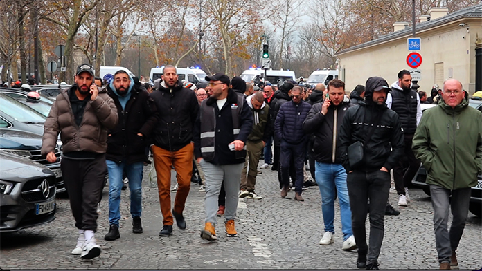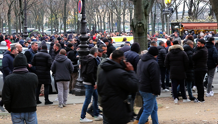 Paris’teki tarihi askeri müze önünden Ulusal Meclis’in çevresinde kontak kapatıp eylem yaptılar. Taksi şoförleri meşale yakıp, “Taksiler tehlikede” ve “Taksiciler öfkeli” yazılı pankartlar taşıdılar. Bölgedeki trafik felç olmuş durumda, polis çevresindeki tüm sokakları kapattı. Eyleme Fransa’nın farklı bölgelerinden 1500’den fazla taksi katıldığı öğrenildi.