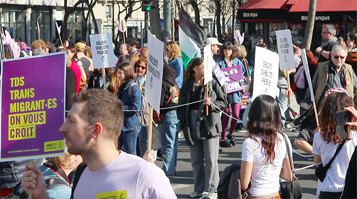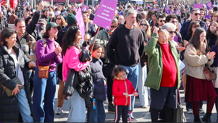 Başkent Paris’te République Meydanı’nda başlayıp Nation meydanında son bulan kadınların gösterisine, eşleriyle veya bireysel olarak katılan bir çok erkek destek verdi. 130 bine yakın kişinin dünya kadın hakları günü gösterisine katıldığını açıklayan Paris Valiliği, aşırı sağcı kolektif Némésis’in sorun çıkarma ihtimaline karşı ciddi önlemler alındığını belirtti.