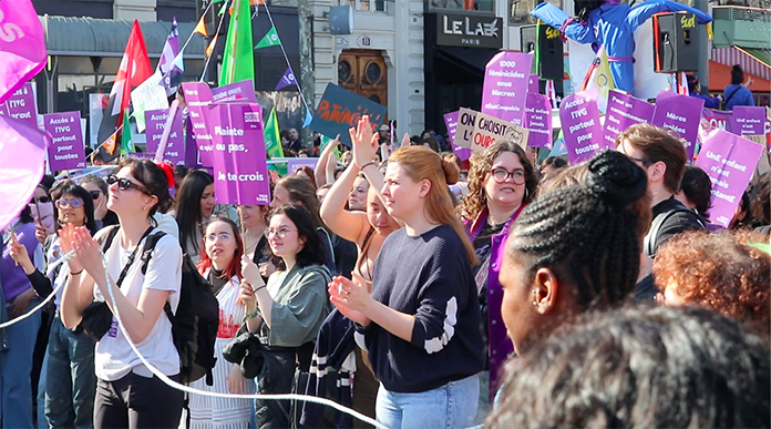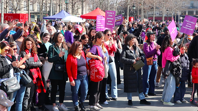 Paris’teki dünya kadın hakları günü gösterisinde, ABD Başkanı Donald Trump’ın başkanlık koltuğuna oturmasından bu yana kadın haklarına daha da belirginleşen bir eğilim olduğunu, iş yerinde ayrımcılıktan ve kürtaj ve gebeliğin gönüllü olarak sonlandırılması gibi konularda kısıtlama olacağından endişe duydukları ifade edildi.