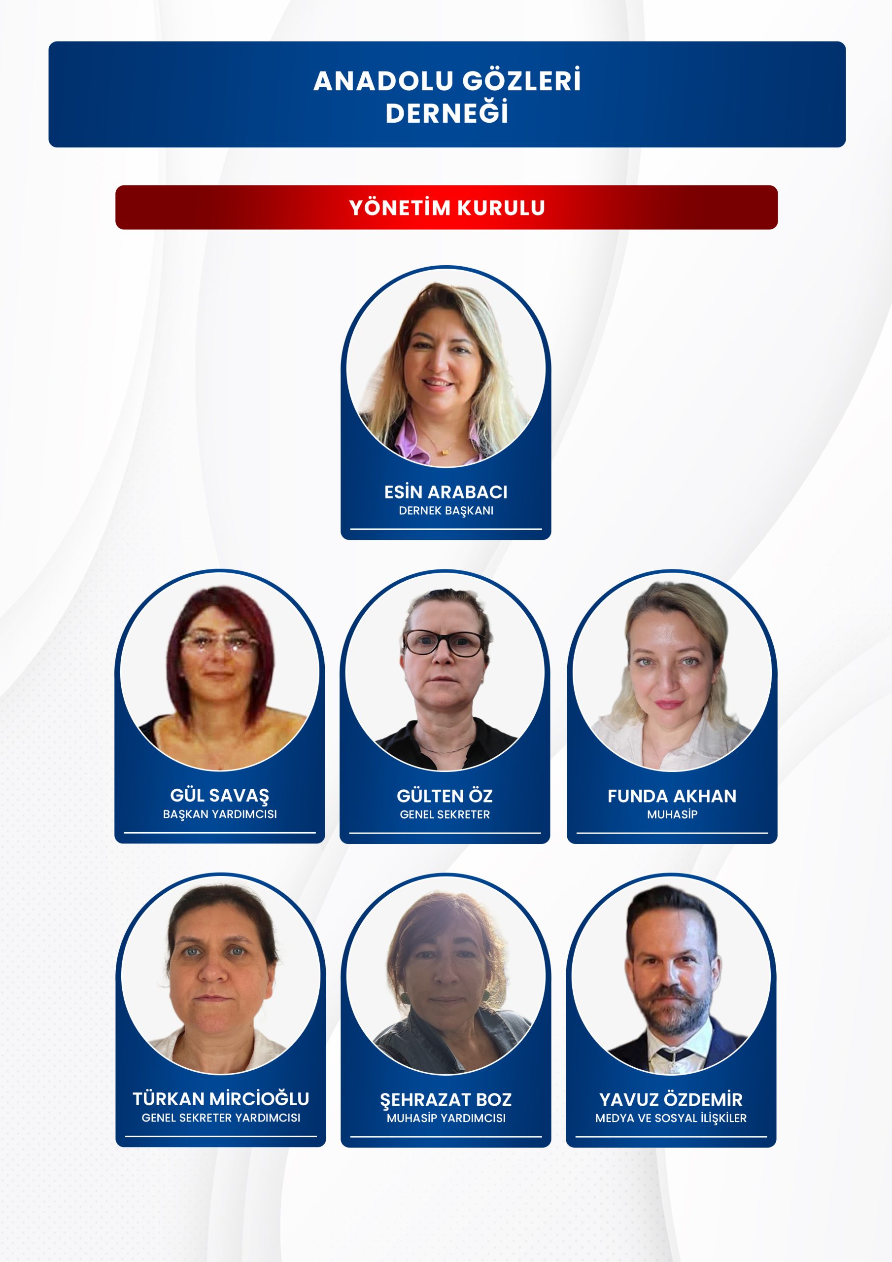 Esin Arabacı: Anadolu Gözleri Derneği resmi olarak kurulduğu tarihten beri yani 2017 yılından bu yana başkan olarak görevdeyim. Arkadaşlara biraz değiş tokuş yapalım diyorum, sağolsun arkadaşlar derneğin bu tempolu çalışma halini görünce kimse yanaşmıyor. Çünkü zaman alan bir iş. Biz sana destek oluruz, sen devam et diyorlar, o şekilde buraya kadar geldik.