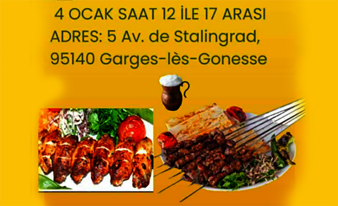 Tüm Kebap Severler 4 Ocak 2026 Pazar Günü 12 İle 17 Saatlerı arasında davetli. Adresimiz:5 Av. De Stalingrad, 95140 Garges-les-Gonesse
