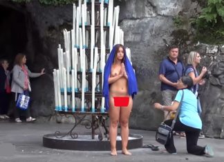HZ. İsa'nın annesi "Meryem Ana"nın görüldüğü söylenen, katolikler tarafından kutsal sayılan Fransa’nın Lourdes kentindeki kutsal alanda kendini çıplak olarak sergileyen. Deborah de Robertis adlı 36 yaşındaki feminist sanatçı, Tarbes mahkemesi tarafından para cezasına çarptırıldı.